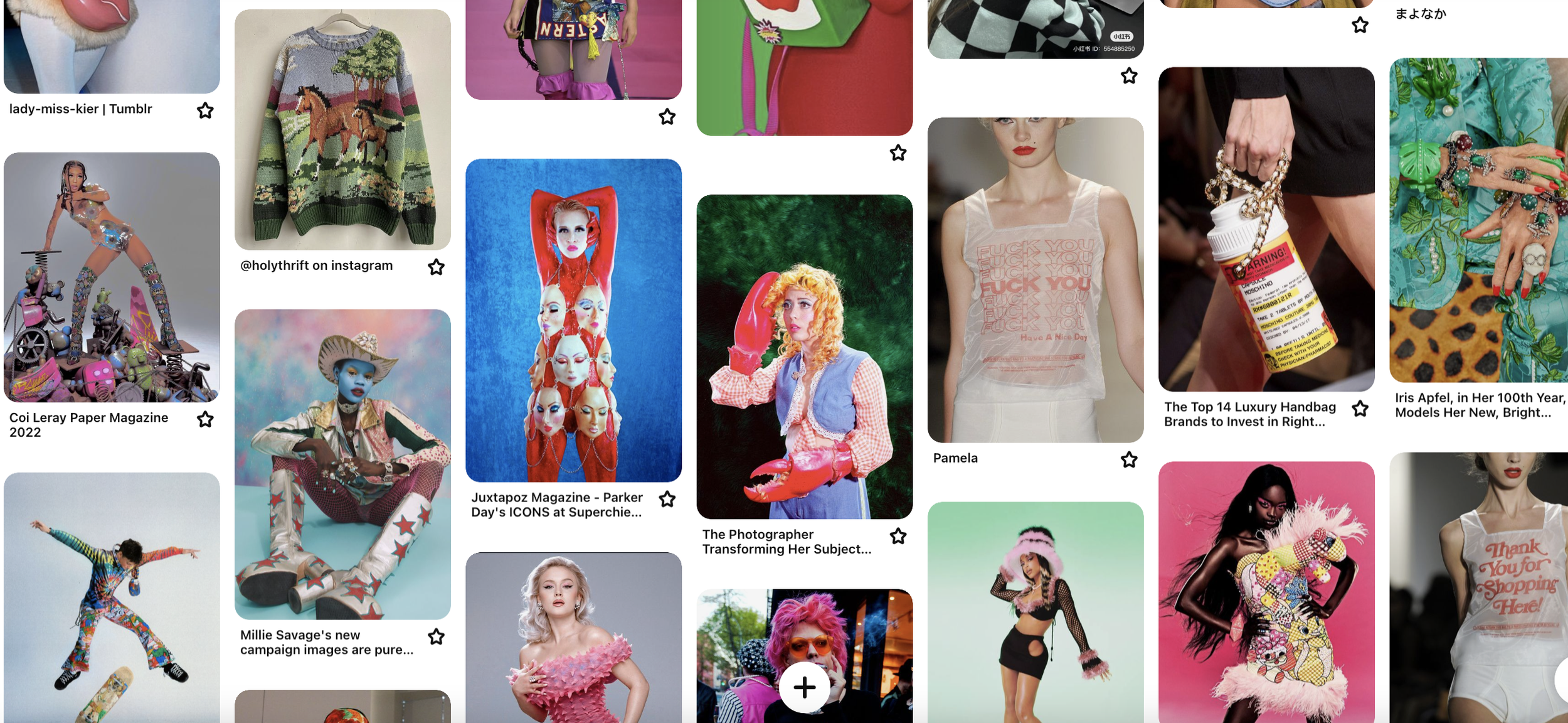 With a team of four other dedicated colleagues, we began to examine the current state of the industry in relation to the zeitgeist. With a generous amount of research concerning cultural critiques, the latest runways shows, streetwear, and social media, we found bold and dynamic patterns centered around self-expression. We were drawn to the idea of bad taste- a rebirth of the tacky and maximalist approach to fashion that seems to take on new heights as dopamine dressing and non-conforming styles within Gen-Z continues to evolve.