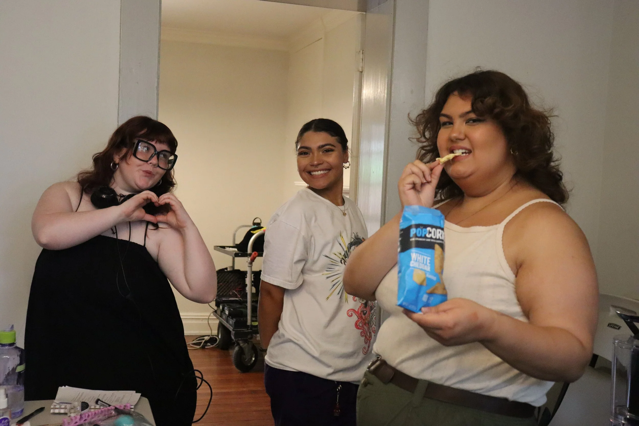 The pre-production process took place from January to June of 2023. With the guidance of the VCU Cinema department and our executive producer Vivian Owens, the full 45-person crew began to form. Over the next six months, we painstakingly planned each detail of the film. I spent my time organizing my vision and learning how to communicate it. The team went through sixteen script revisions, hosted weekly department head meetings, managed our $5,000 budget, sat through tedious casting sessions, crafted props, worked alongside our stunt choreographer, sewed costumes, ran through camera rehearsals, and scouted locations that seemed to keep falling through- we kept working right up until the very last second.